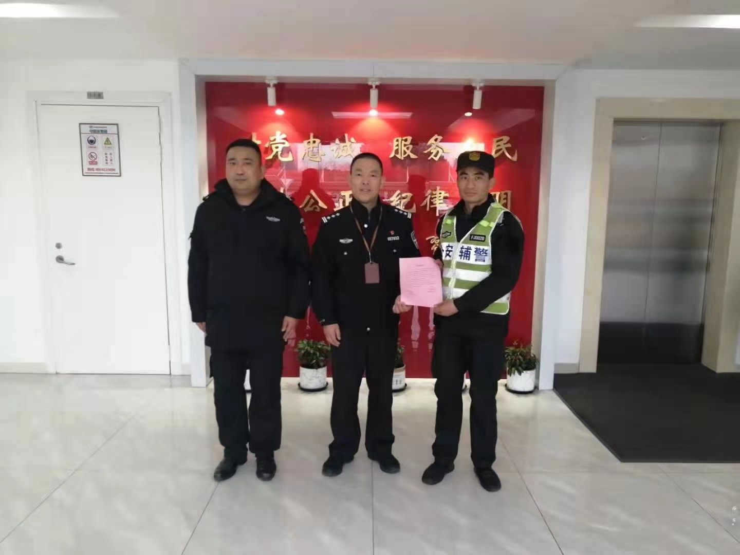 2月5日,宗保公司駐周浦輔警項目收到周浦派出所送來(lái)的一封表?yè)P信,信中對隊員張濤忍辱克制的優(yōu)秀表現提出了特別表?yè)P。