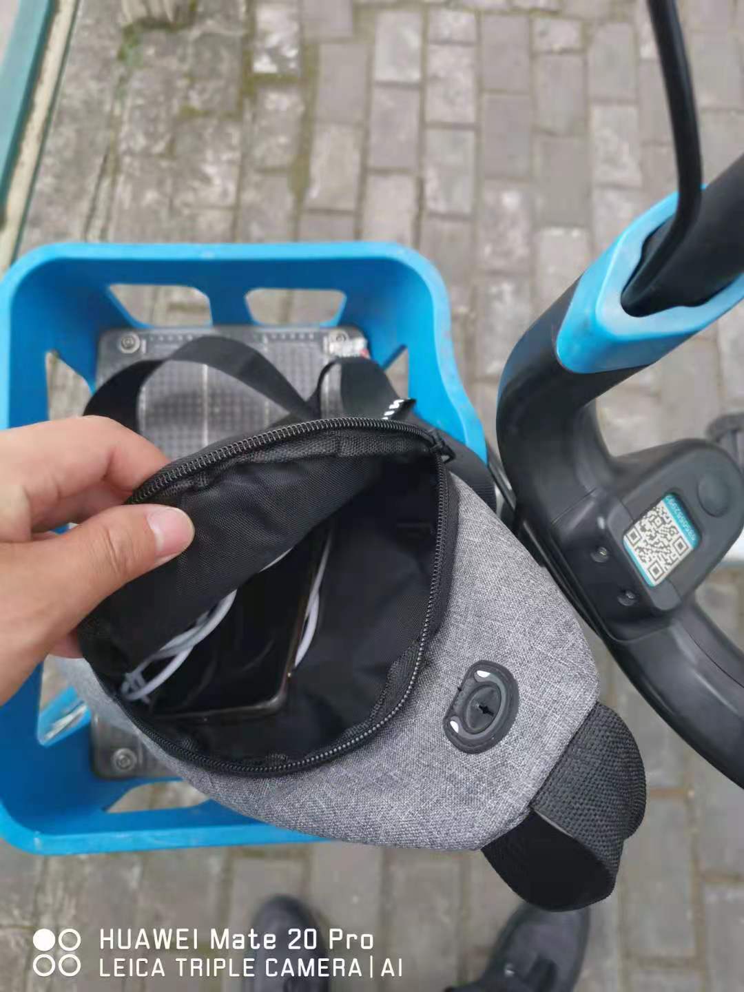 當天12:10, 徐建在沈梅東路163號社區衛生服務(wù)中心值勤時(shí),發(fā)現在路口的共享單車(chē)車(chē)筐里有一個(gè)斜挎包無(wú)人認領(lǐng),包內有一部新手機、充電器和耳機等物品。因擔心斜挎包被非失主拿走,在無(wú)法聯(lián)系失主、又考慮到失主可能會(huì )回來(lái)尋找的情況下,徐建便在原地等待。