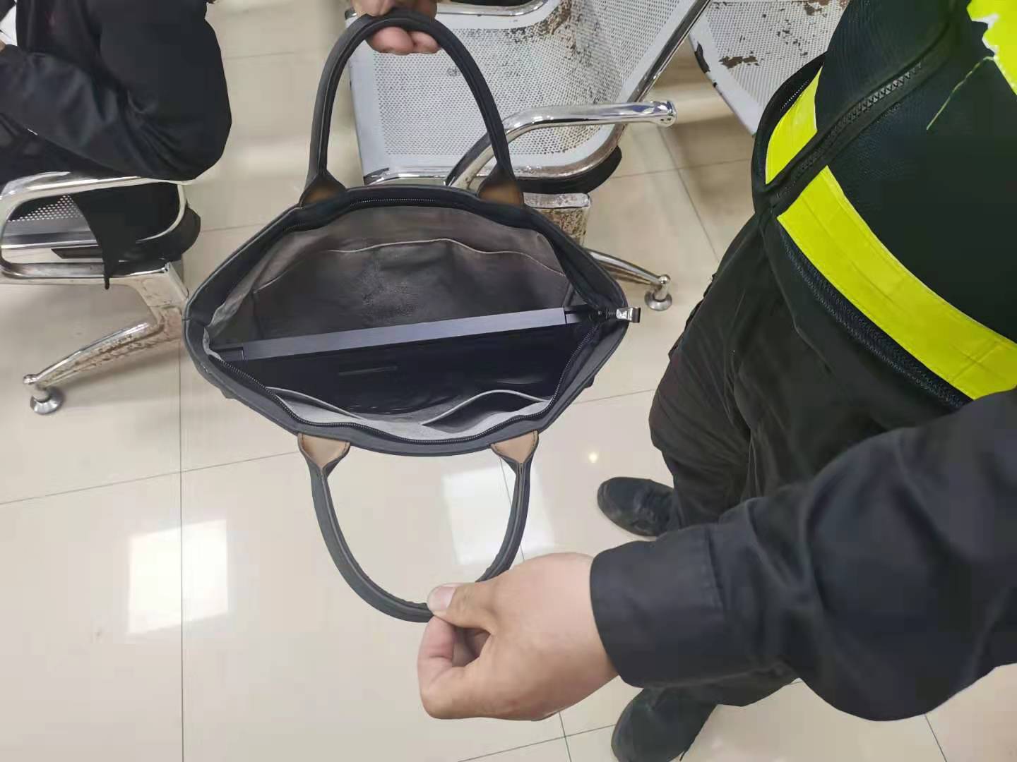 考慮到失主丟失貴重物品有可能回來(lái)尋找,負責人就安排羅寧寧在原地等待。半小時(shí)后,仍無(wú)人前來(lái)認領(lǐng),羅寧寧就上報城管中隊領(lǐng)導,并根據指示將電腦包送到梅園派出所。