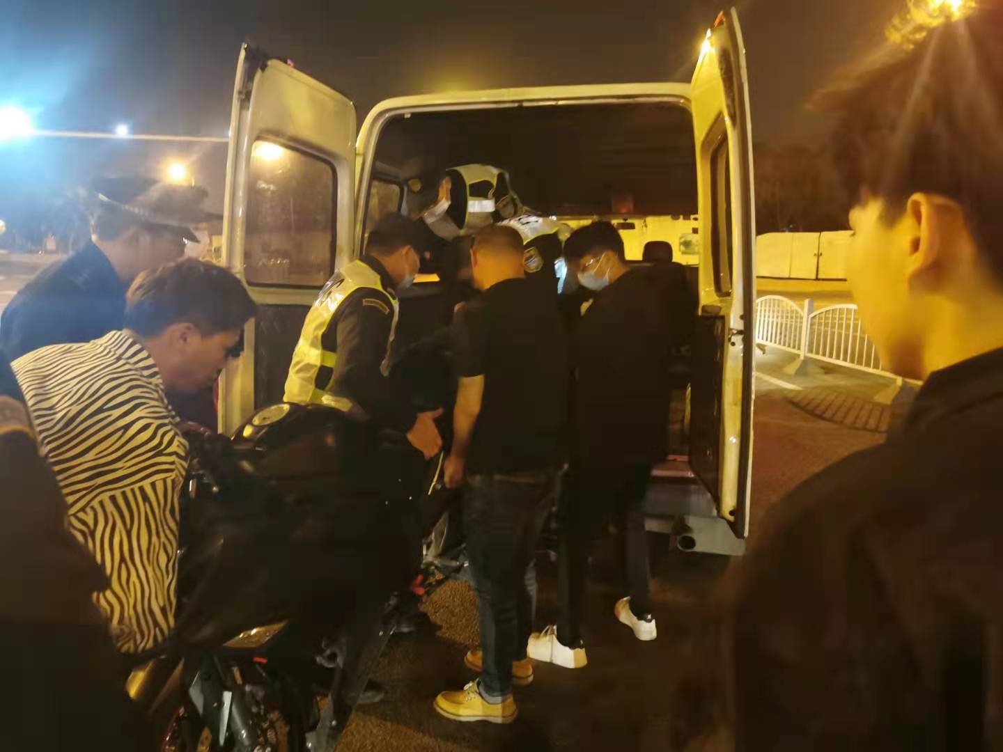 張港第一時(shí)間將掌握的信息上報帶班組長(cháng)趙銀龍,隨后趕到現場(chǎng)的趙銀龍,一邊將受傷的摩托車(chē)手扶至路旁休息,一邊組織隊員維護現場(chǎng)交通秩序,引導車(chē)輛有序通行。