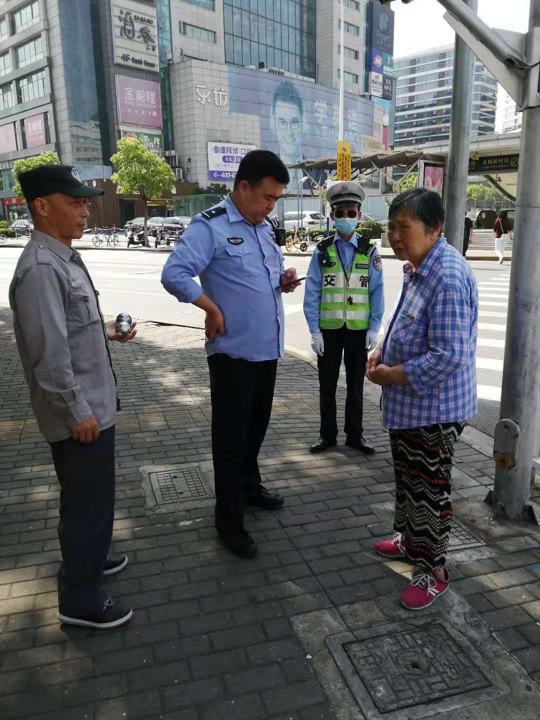 5月30日,宗保公司駐閔行虹橋交管輔警項目隊員楊雷幫助迷路老人回家。