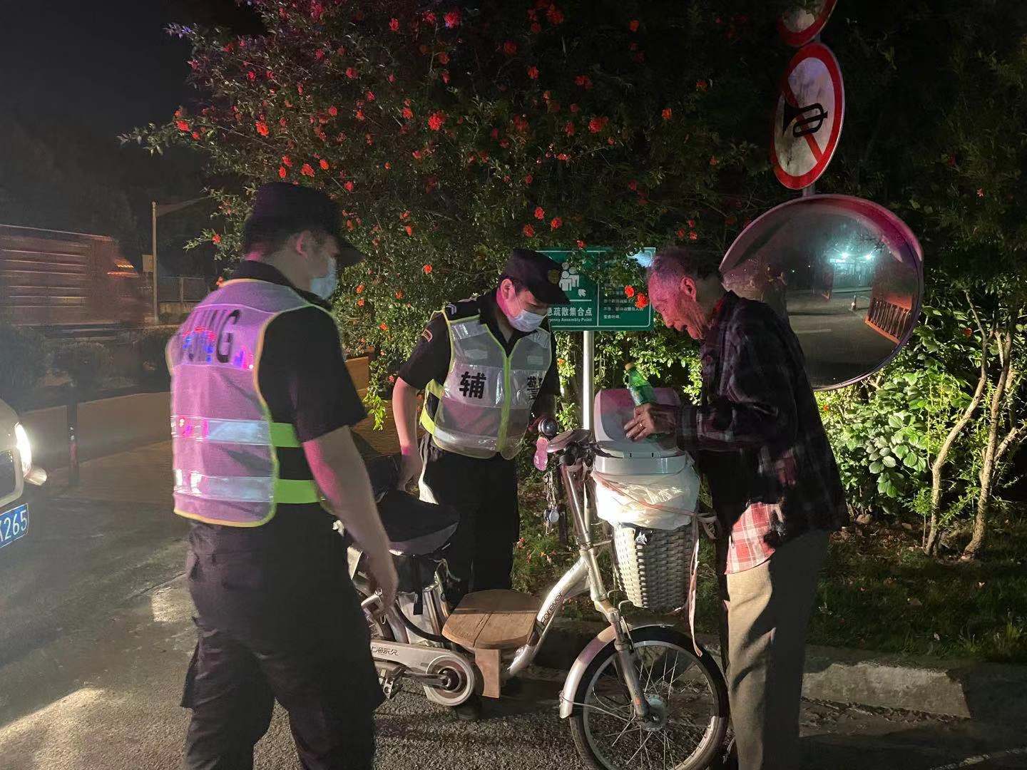 當天20:46,宗保車(chē)巡隊員接到金橋派出所綜合指揮室發(fā)出的“金穗路1268號門(mén)口,有一位90歲老爺爺騎電瓶車(chē)迷途的警情”,便第一時(shí)間趕到現場(chǎng)。經(jīng)了解,老爺爺下午騎車(chē)從家里出來(lái)辦事,因天黑再加上年紀大,忘記了回家的路。但值得慶幸的是,老爺爺記得自己所住小區的名字。