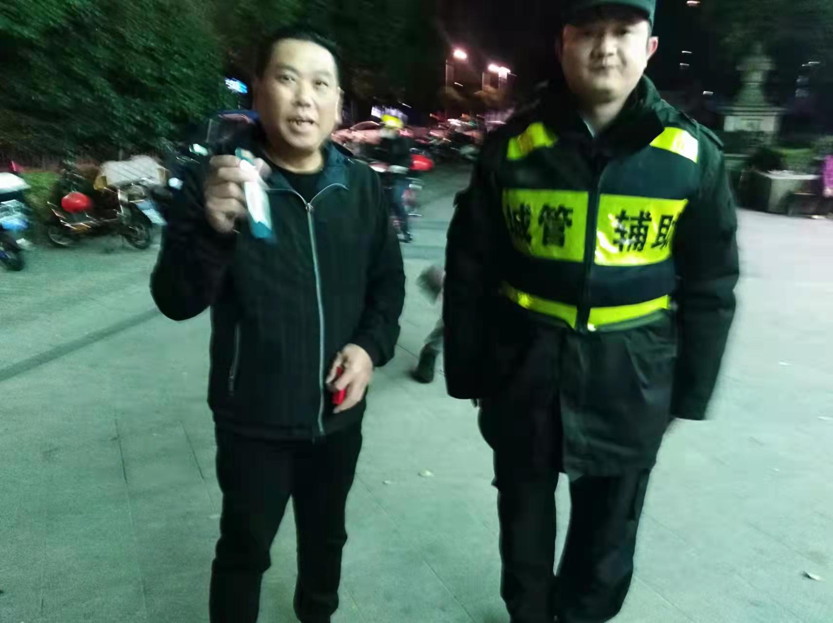 徐周見(jiàn)狀主動(dòng)上前,問(wèn)他是不是在找一把車(chē)鑰匙。待核對確認男子是車(chē)鑰匙主人后,徐周將鑰匙歸還給了他。