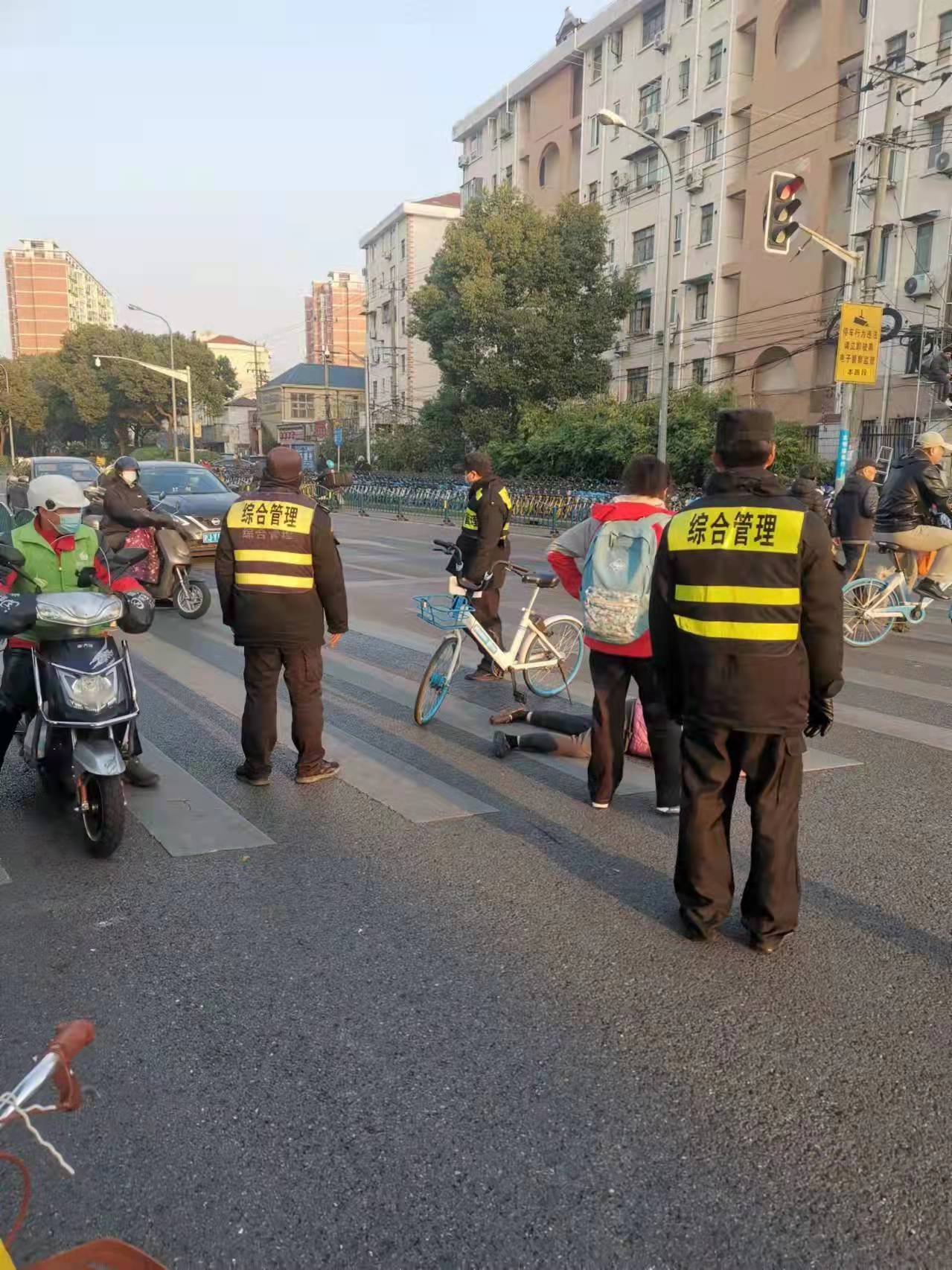 巡邏途中遇車(chē)禍 熱心幫助揚正能—三林市容項目隊員幫助受傷阿姨