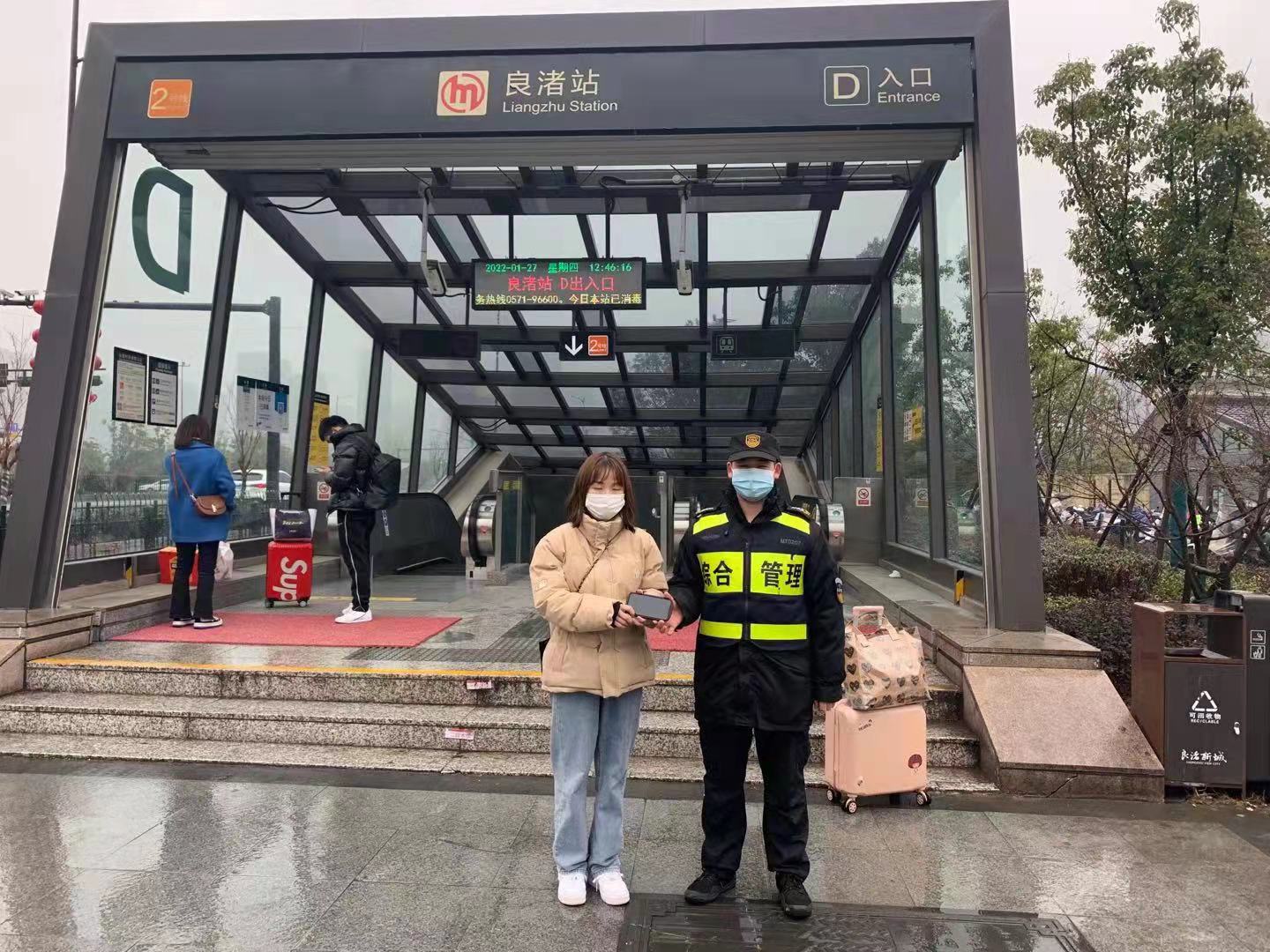 1月27日,浙江民泰駐良渚地鐵菜場(chǎng)項目隊員余天照撿到手機歸還失主,受到稱(chēng)贊。