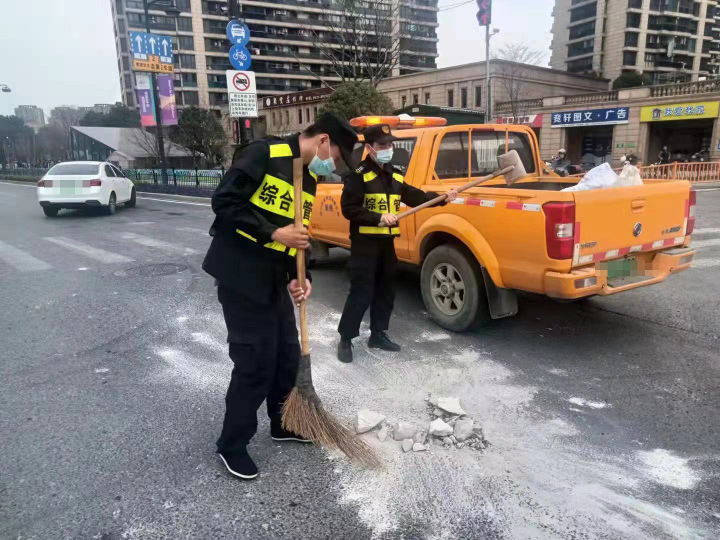 見(jiàn)此情形,大家趕緊上前,楊培發(fā)引導路過(guò)車(chē)輛減速慢行,其他隊員與隨后趕到現場(chǎng)的保潔員一起進(jìn)行清理。經(jīng)過(guò)20多分鐘的努力,路面很快被清掃干凈,道路恢復了通暢,此舉贏(yíng)得了過(guò)往市民群眾的稱(chēng)贊。