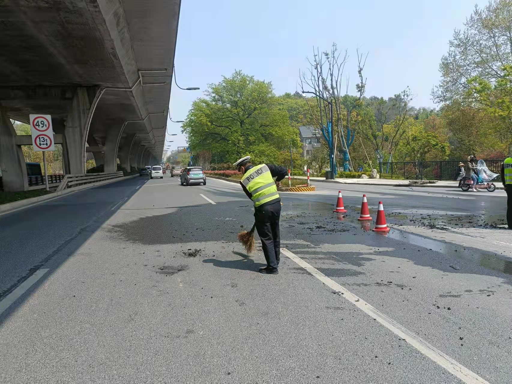 4月3日,浙江民泰駐中泰街道交警項目隊員及時(shí)協(xié)助撲滅高速路上火情。