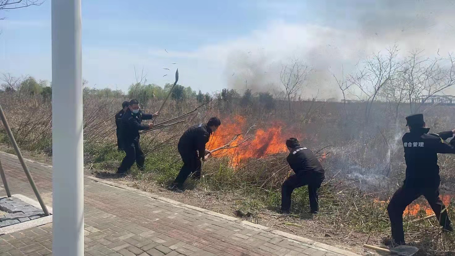 路邊草地失火 隊員緊急撲滅—滴水湖項目隊員協(xié)助滅火
