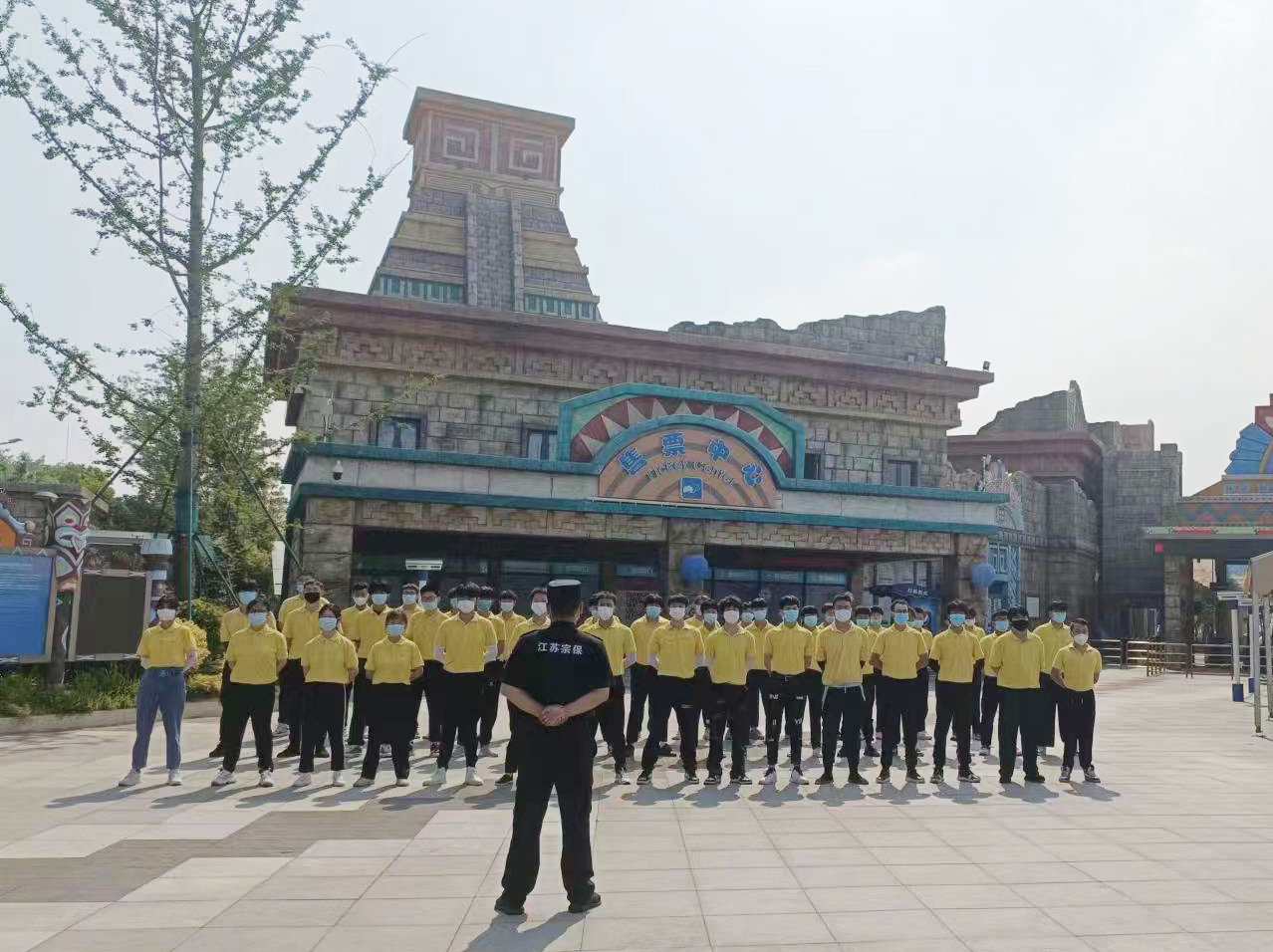 近日,南京華僑城歡樂(lè )谷組織新員工進(jìn)行崗前培訓,宗保公司應邀選派4名優(yōu)秀退役軍人員工擔任隊列訓練教官。