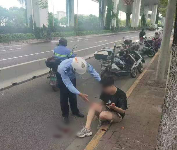 原來(lái)是一名騎電動(dòng)車(chē)的男子超車(chē)時(shí),撞倒了同向騎共享單車(chē)的白衣女子。白衣女子腰部受傷,一時(shí)無(wú)法動(dòng)彈;而男子的臉部、膝蓋一直流著(zhù)血,看起來(lái)也比較嚴重。