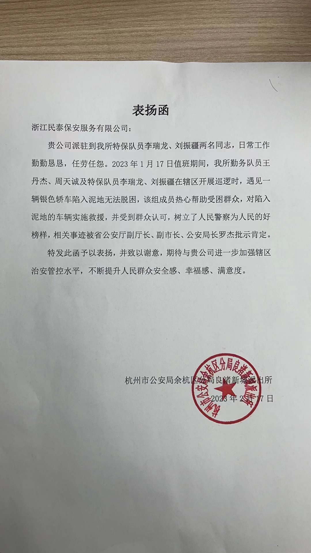 看著(zhù)脫困的車(chē)子,于師傅十分感激,激動(dòng)地說(shuō):“真是太感謝你們了,要不是你們幫忙,我朋友回老家可能要錯過(guò)車(chē)子了?!笔潞?,民泰員工熱心幫助受困群眾的行為受到了杭州市公安局余杭區分局的通報表?yè)P。