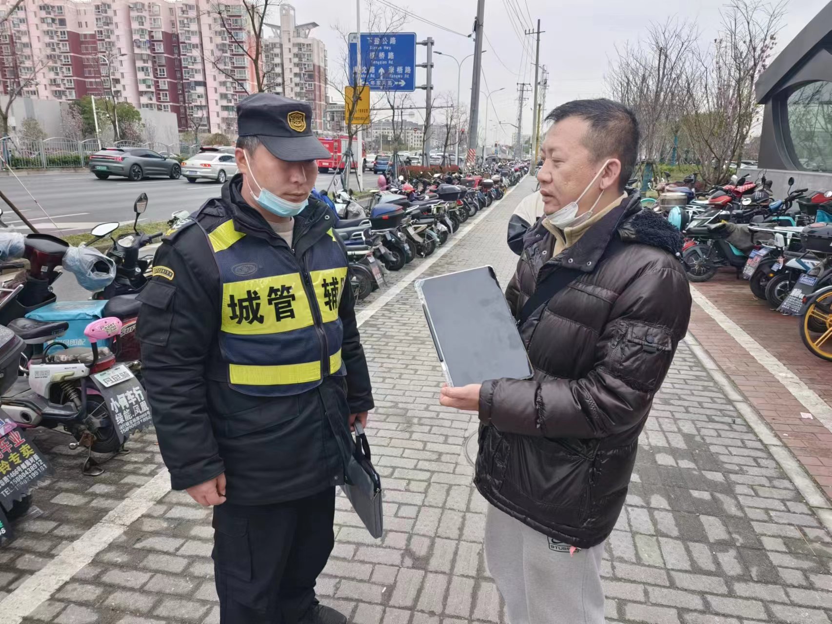 當日12:16,公司員工董文韜在杭師大地鐵A口巡查時(shí),在一輛共享單車(chē)的儲物筐里發(fā)現一臺平板電腦沒(méi)人認領(lǐng),就將情況報告了組長(cháng),并按指示守在原地等待。