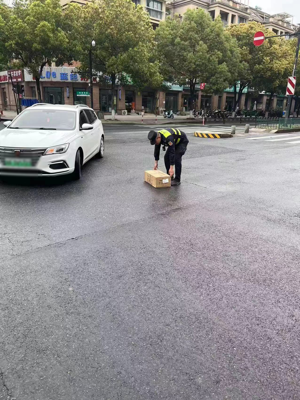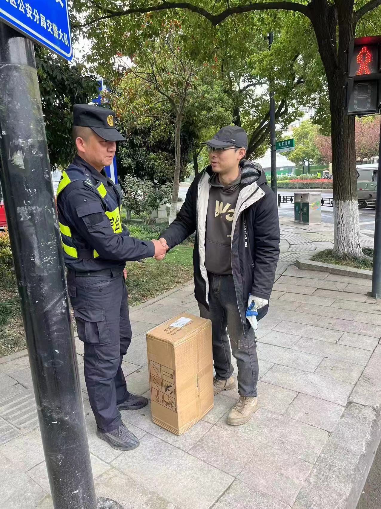 快遞包裹掉馬路 員工撿到等候還—浙江民泰公司員工撿到快遞包裹