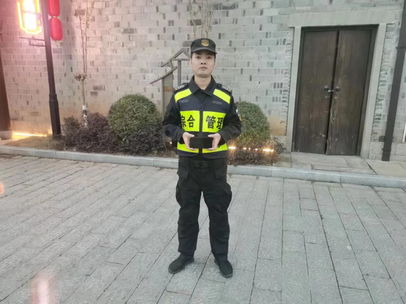 當日16:15,公司員工況潔在閑林老街大草坪值勤時(shí),在公共廁所洗漱臺上撿到一部黑色的蘋(píng)果12。因手機設有鎖屏密碼,無(wú)法聯(lián)系失主,況潔便將情況報告了組長(cháng),并按指示在附近邊值勤邊等待失主。