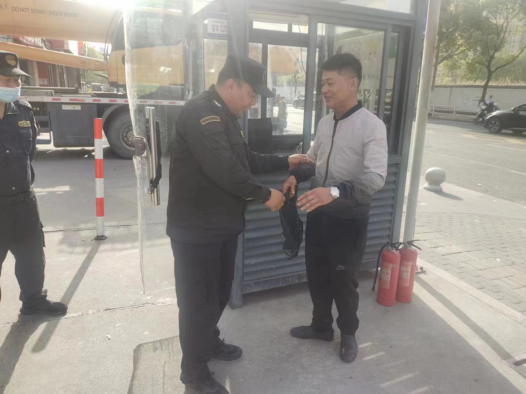 8:00左右,一男子趕到約定的地點(diǎn),經(jīng)核實(shí)確認男子是失主后,江代華把手提袋和物品一并交還給了男子。男子連連向江代華道謝,并執意拿出其中的酒送給江代華表示感謝,被江代華婉言謝絕了。