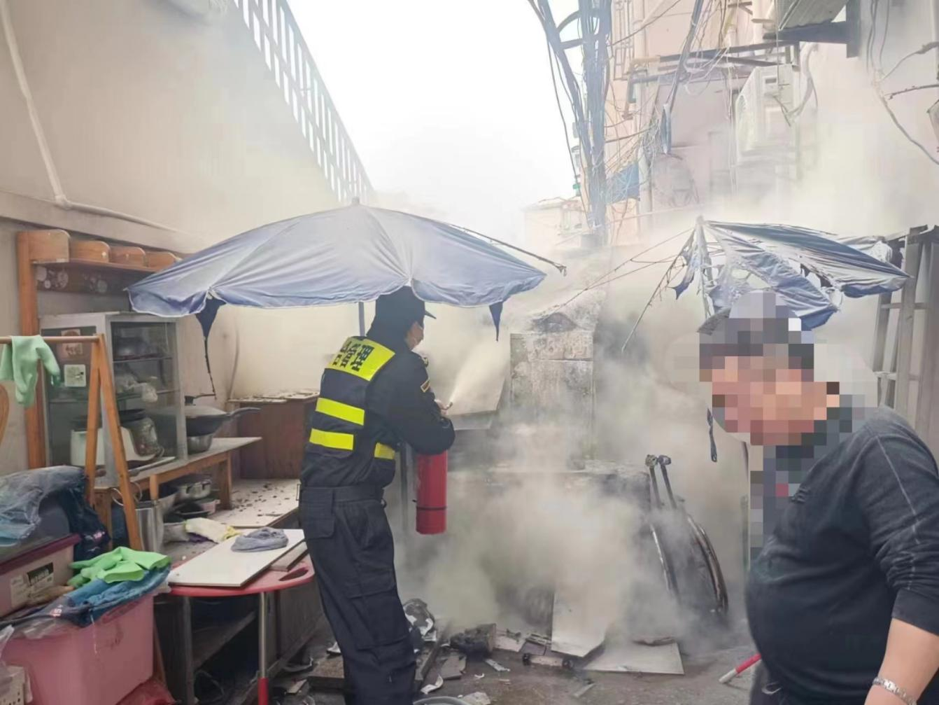 小區樓道起火 員工及時(shí)撲救