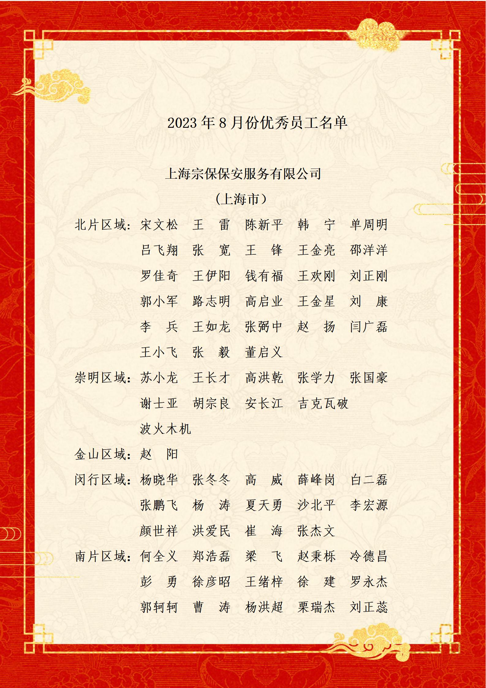 附:8月份優(yōu)秀員工名單