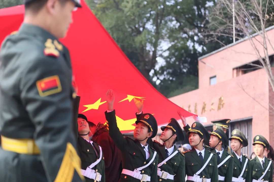 清晨旭輝的照耀下,升旗儀式正式開(kāi)始。國旗護衛隊的3位升旗手邁著(zhù)整齊的正步,舉著(zhù)國旗走向升旗臺。在莊嚴的國歌聲中,五星紅旗冉冉升起,全體師生齊唱國歌,深情而莊重地注視著(zhù)五星紅旗,用嘹亮的歌聲表達對祖國深深的熱愛(ài)。