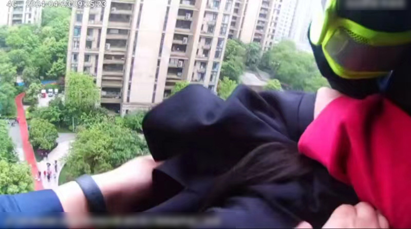 4月23日,浙江民泰公司駐杭州市余杭區良渚新城派出所項目員工合力成功救下欲跳樓輕生女子。