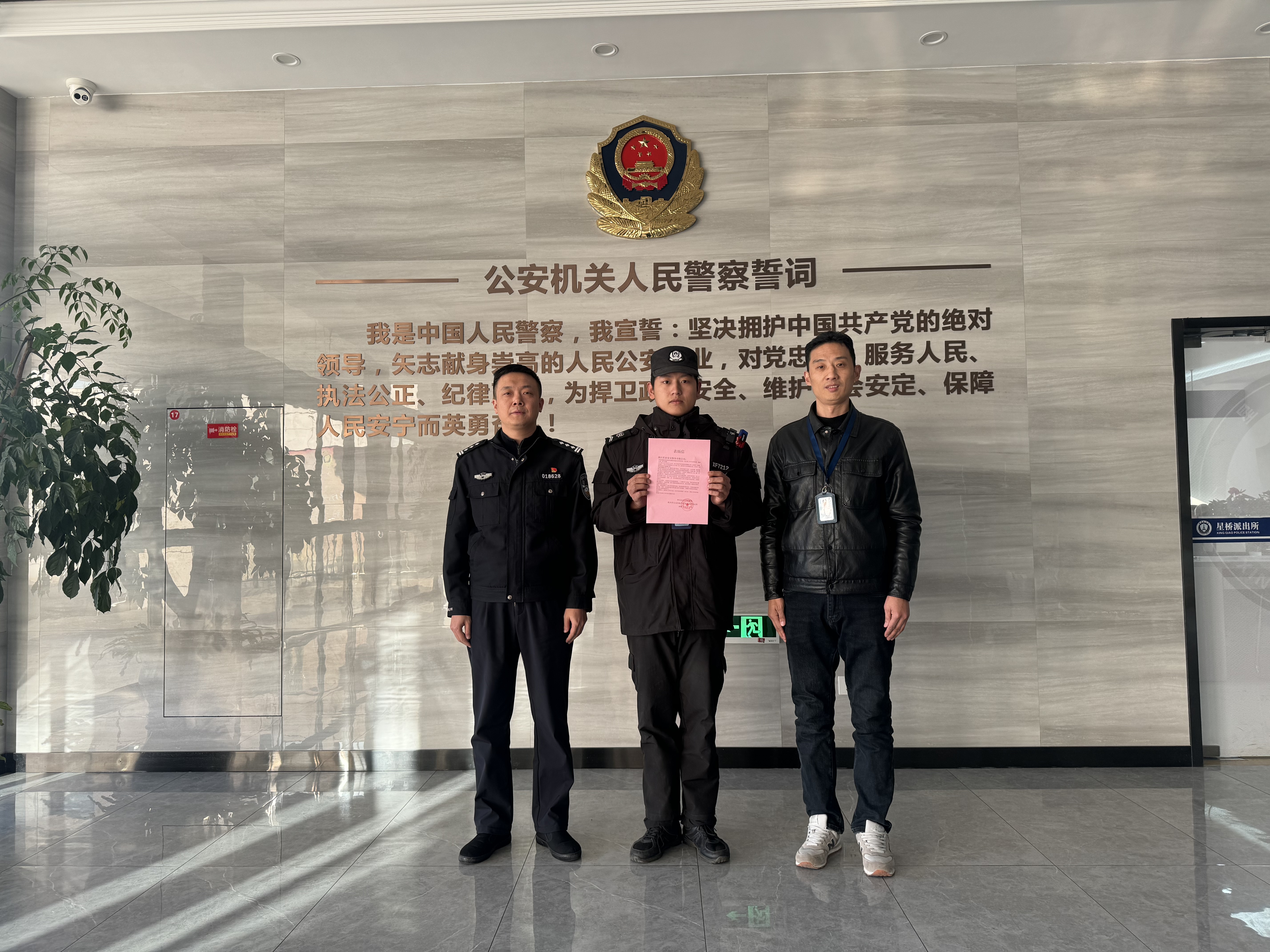 1月17日,浙江民泰公司收到杭州市公安局臨平區分局星橋派出所的表?yè)P信,信中對公司員工王博源熱心救助暈倒阿姨的暖心舉動(dòng)給予了高度贊揚。