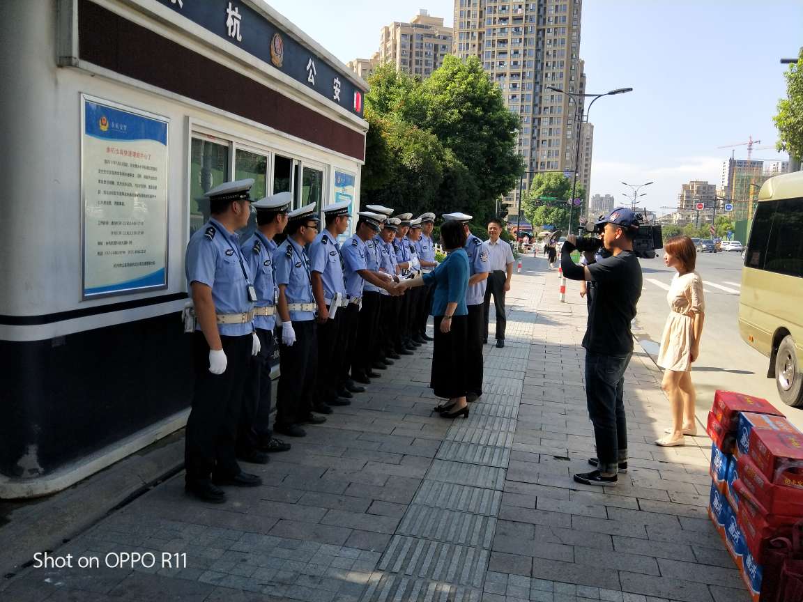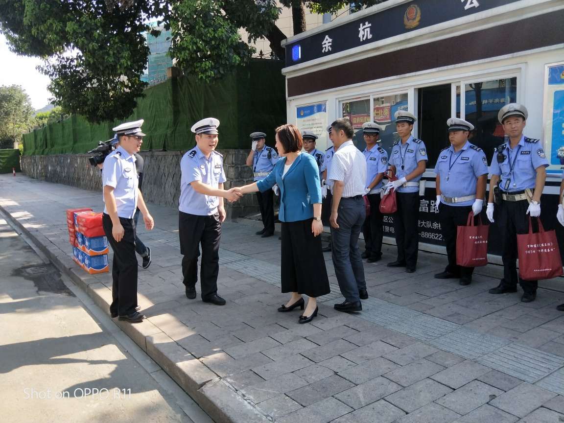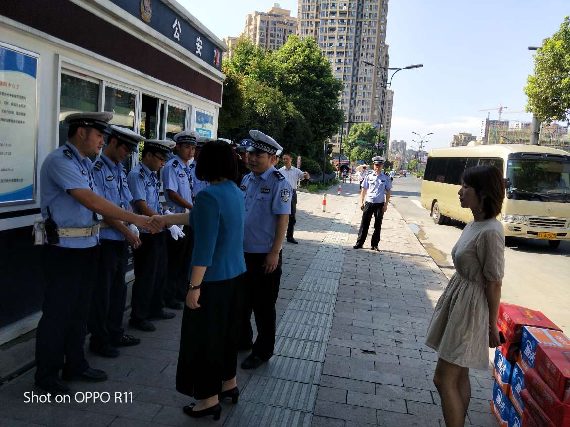 今天下午區政協(xié)主席阮文靜,區人大副主任白美玉,副區長(cháng)葛建偉,區公安分局副局長(cháng)徐義峰冒著(zhù)酷暑來(lái)我閑林街道進(jìn)行“送清涼”慰問(wèn)活動(dòng)。 盛夏時(shí)節,驕陽(yáng)似火,區政協(xié)主席阮文靜,區人大副主任白美玉,副區長(cháng)葛建偉,區公安分局副局長(cháng)徐義峰對頂烈日、戰高溫,始終堅持在一線(xiàn)的閑林交通安全工作站的隊員進(jìn)行了親切慰問(wèn),并對隊員們?yōu)樯鐣?huì )做出的貢獻表示感謝,并一一握手親切說(shuō)到“同志們辛苦了”!區領(lǐng)導對閑林交通安全工作站隊員的工作也進(jìn)行了充分的肯定和認可,同時(shí)也再三囑咐工作站的隊員在工作中注意避暑防暑