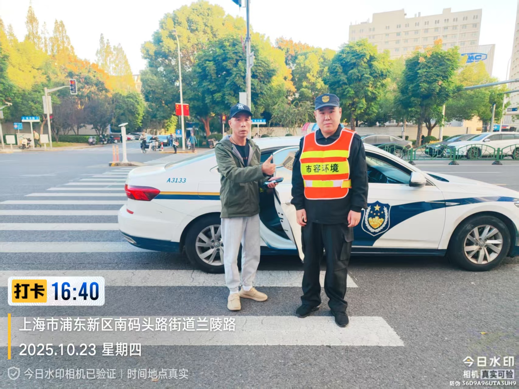 10月23日16:28,宗保公司駐浦東新區南碼頭市容項目員工丁曉樂(lè )在蘭陵路值勤時(shí),撿到一部蘋(píng)果手機。報告項目負責人后,丁曉樂(lè )便在原地邊值勤邊等待失主。