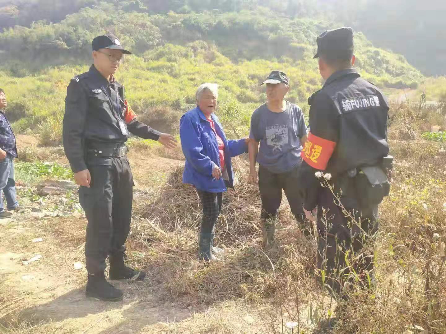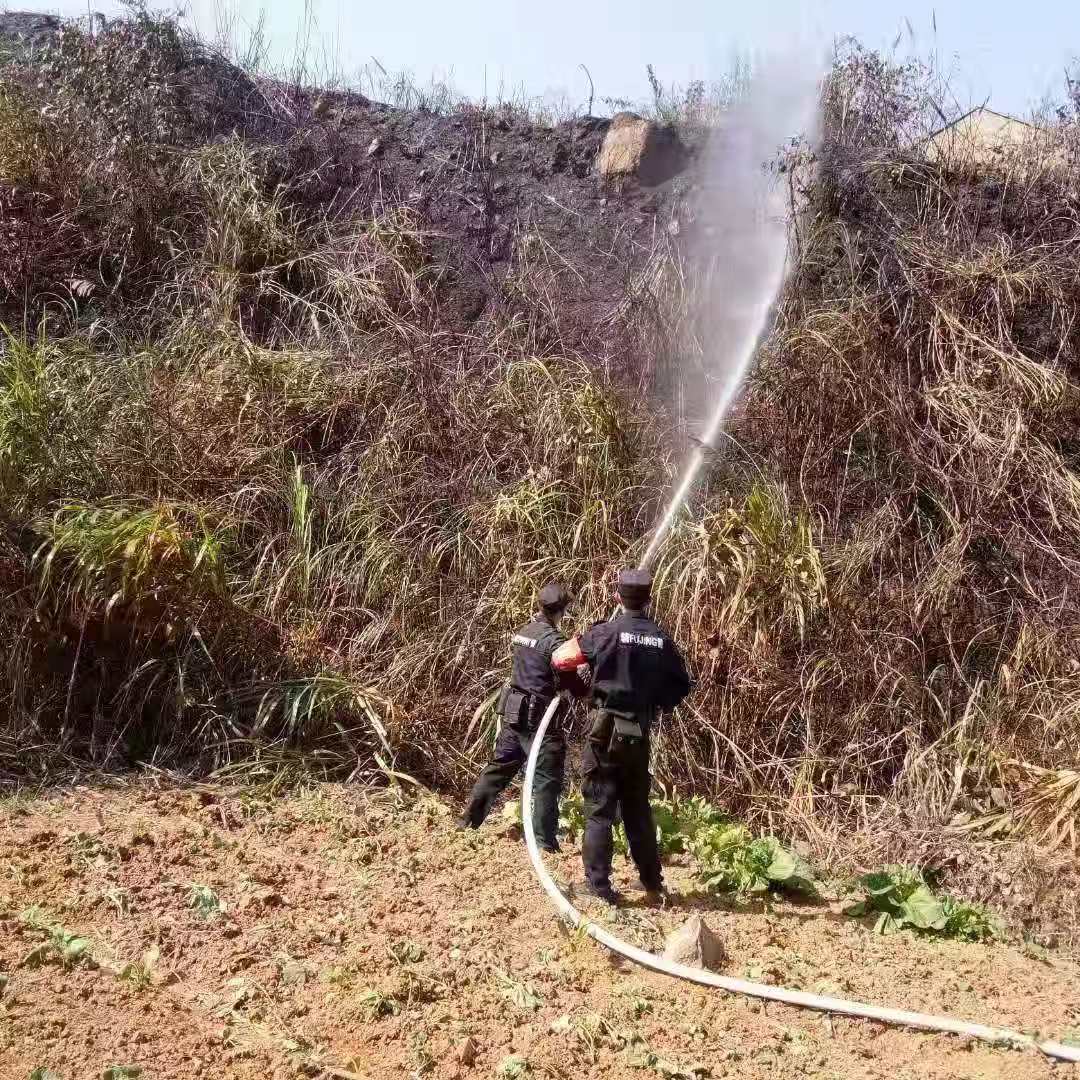三位隊員趕到現場(chǎng)時(shí),得知是一對七十多歲的老夫妻在山上焚燒桔梗引起大面積火災,現場(chǎng)濃煙滾滾。此時(shí),代班組長(cháng)也第一時(shí)間帶著(zhù)支援隊員到達現場(chǎng)展開(kāi)救援,使用車(chē)上配備的滅火器先期滅掉旁邊的小火,阻止火勢蔓延。隨后派出所領(lǐng)導和消防員也陸續趕到現場(chǎng),提水、接水泵、噴水,在大家的共同努力下將大火撲滅,在確定現場(chǎng)無(wú)火星、無(wú)法復燃的情況下,有序撤離了現場(chǎng)。