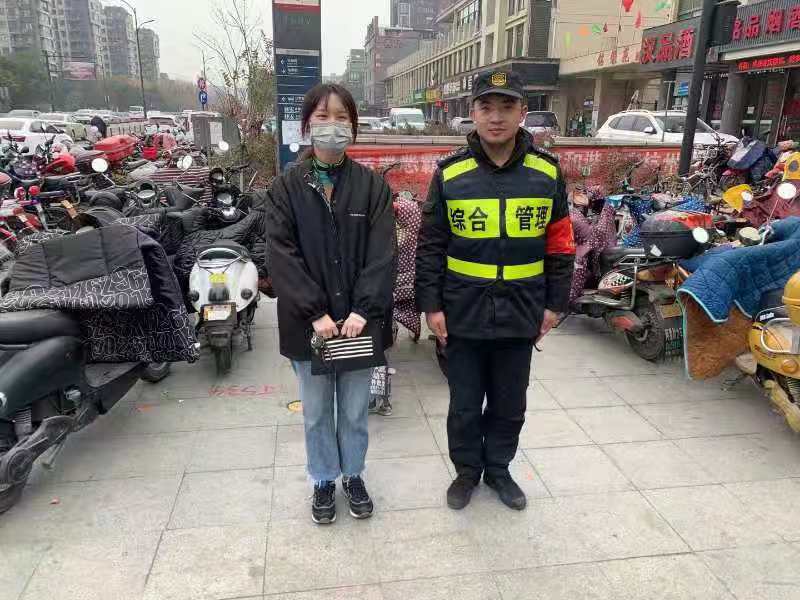 12月19日,浙江民泰駐良渚市容項目隊員楊宇翔撿到手包,交給民警,受到好評。