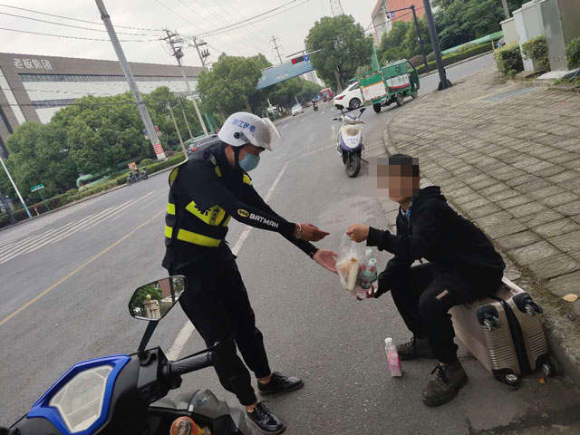 當天15:45,浙江民泰駐東湖市容項目隊員李強、張帥帥巡邏至東湖街道萬(wàn)年路宏達路等紅燈的時(shí)候,突然跑過(guò)來(lái)一個(gè)小男孩,抓著(zhù)隊員的手,眼神里透露著(zhù)恐慌,嘴里喃喃地說(shuō)要救救他。