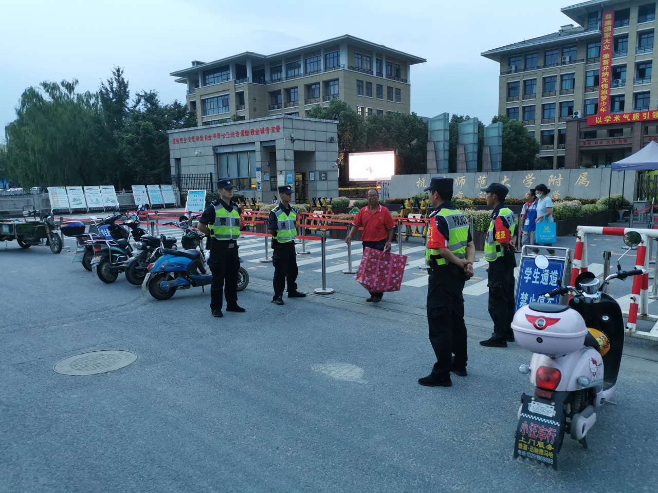 根據甲方要求,結合當地天氣情況,綜合臺風(fēng)等突發(fā)因素的影響,公司選派人員參與早晚高峰的護校工作,做好學(xué)校周邊區域的治安和交通狀況巡查,加強上學(xué)和放學(xué)時(shí)間段的管理,全力維護學(xué)校正常教學(xué)和生活秩序。
